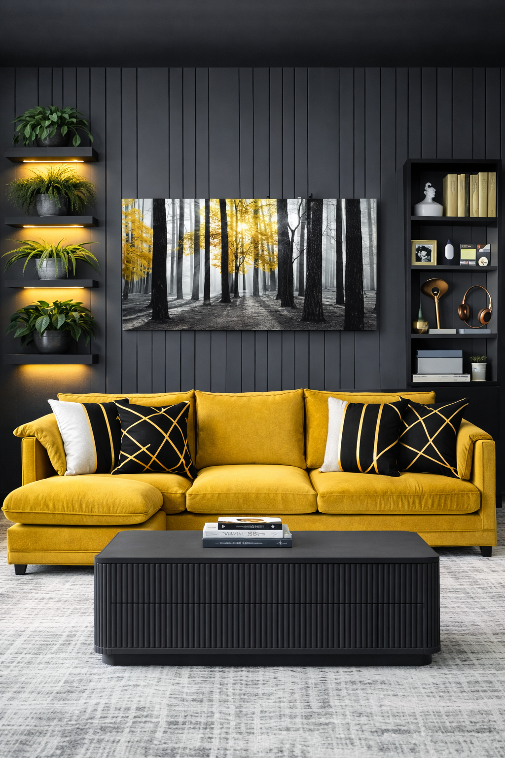 3. Gray & Yellow Living Room: Where Cozy Meets Cheerful Decor