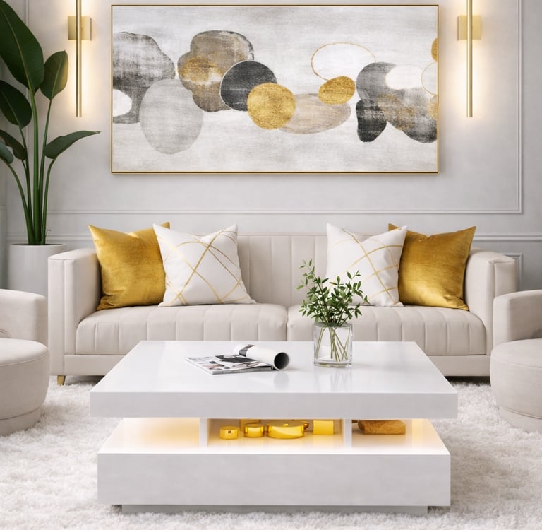1. Gold & White Living Rooms That Feel Bold, Not Busy